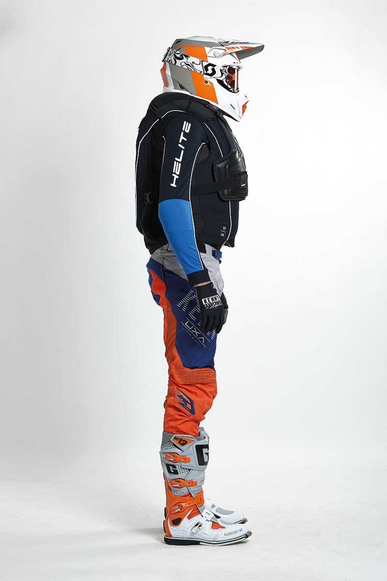 Helite ha diseñado un airbag que cumple con los requisitos de los pilotos en unas condiciones extremas como es el off-road. Este airbag se ubica debajo de la chaqueta del piloto.